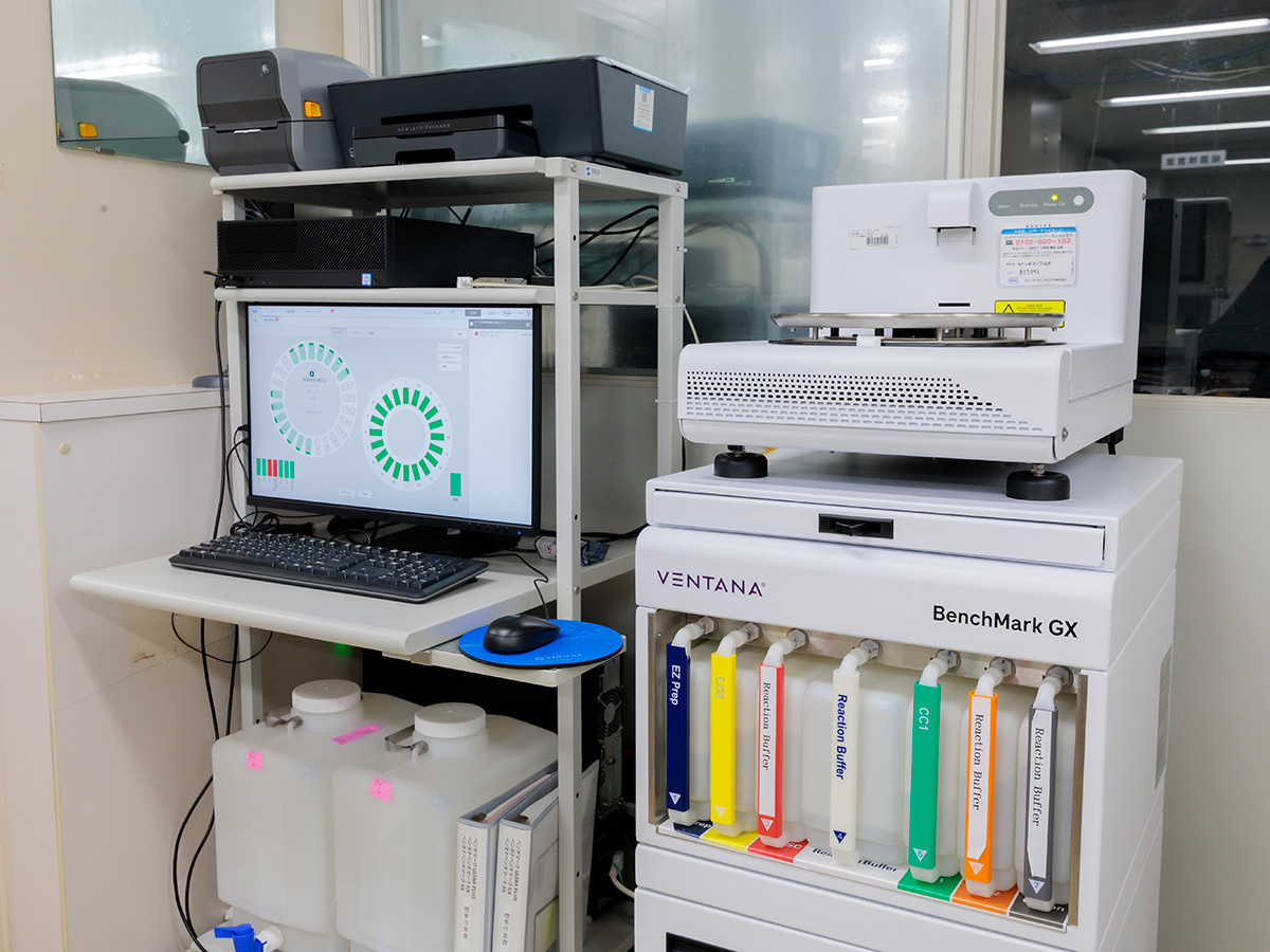 コントロールを同時に染色し染色性をチェックすることで内部精度管理を行っています。主に乳腺のバイオマーカーの染色を行っております。