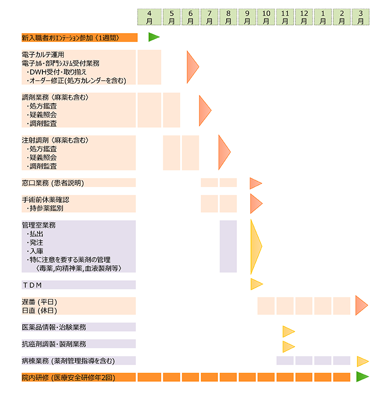 新人薬剤師育成スケジュール (1年目)